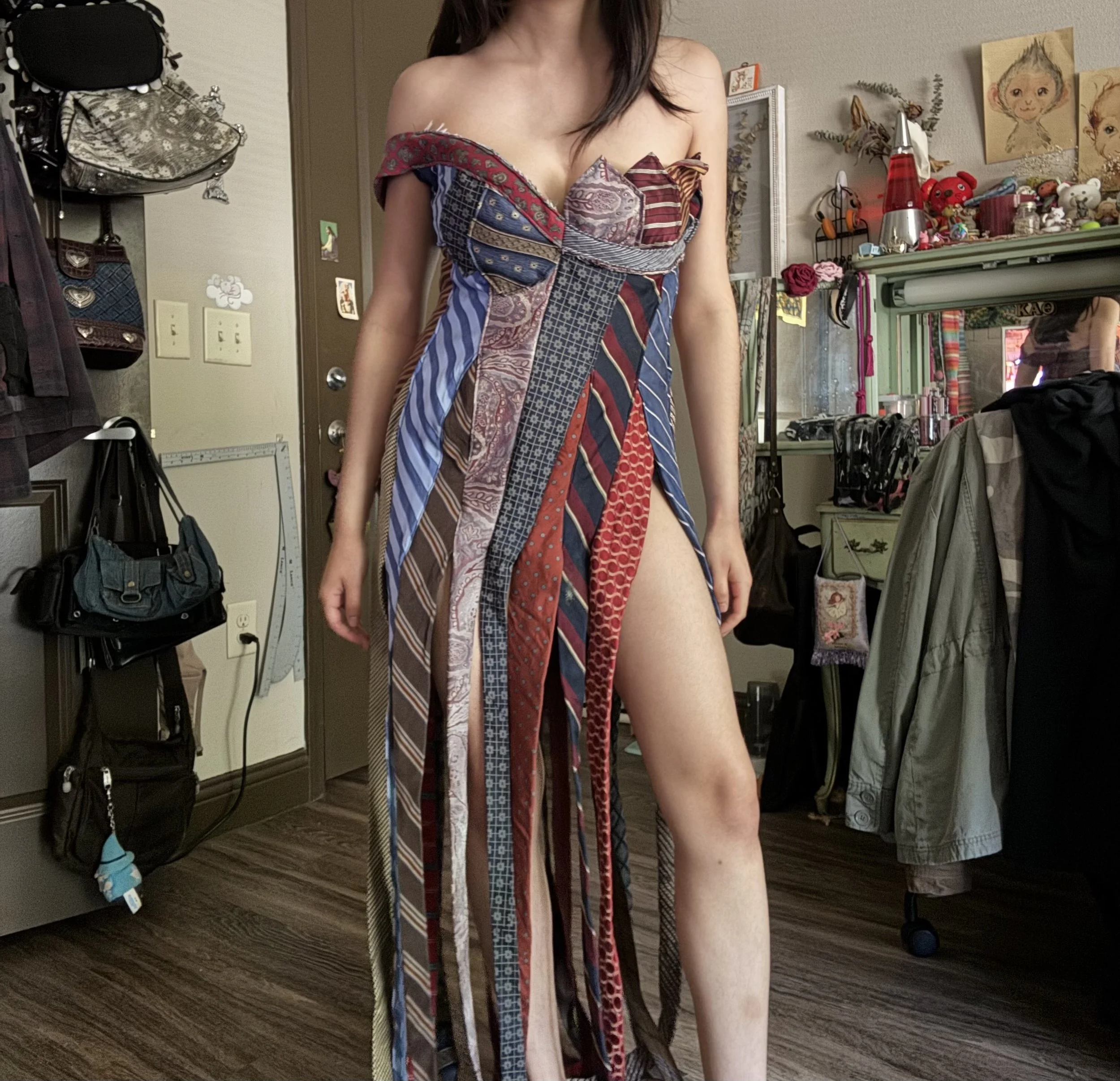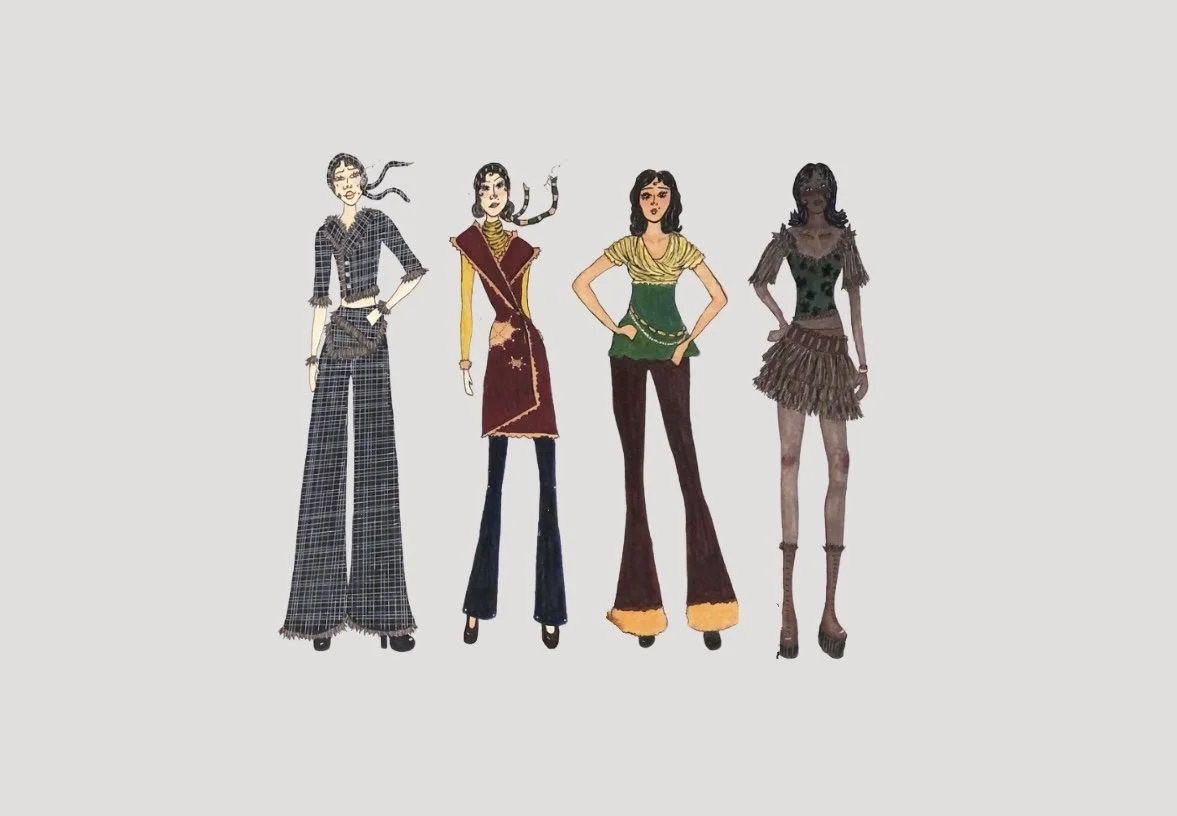 Spring Fashion show Senior collection Tie to Tie Upcycled shorts Second life Project Designer illustration project Metals and Denim bow-plaid Dirt pink Chowder