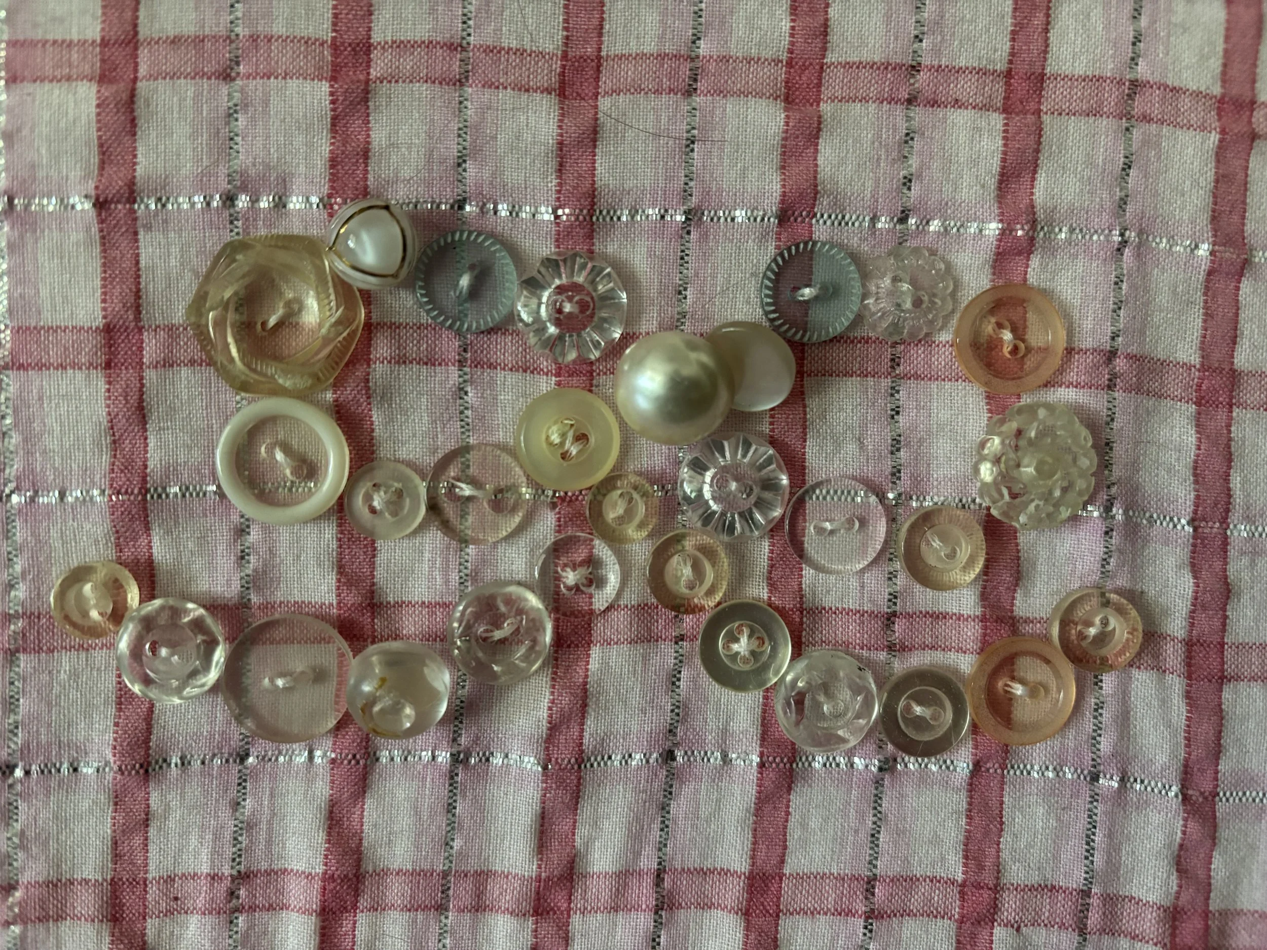 This bag was crafted out of the collection of second hand fabric, buttons, and trim.